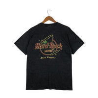 HARD ROCK Hotel Las Vegas Vintage T-Shirt TAG : Hard Rock Hotel SIZE : M MEASUREMENT , * Width (Armpit to armpit) : 19” * Length (Shoulder the end of garment) : 27” * Shoulder : 18” * Sleeve Length : 7.5” CONDITION : Good used, black colour nicely faded and print got crack. * *PLEASE LEAVE ME YOUR PHONE NUMBER ON THE NOTE AFTER MADE A PURCHASE, ITS FOR COURIER NEEDED ** SKU 1799