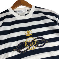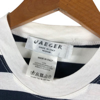 JAEGER Embroidery logo Stripe T-Shirt TAG : Jaeger SIZE : M MEASUREMENT , * Width (Armpit to armpit) : 19” * Length (Shoulder the end of garment) : 27.5” * Shoulder : 28” * Sleeve Length : 10” CONDITION : Good used, no holes and stains * *PLEASE LEAVE ME YOUR PHONE NUMBER ON THE NOTE AFTER MADE A PURCHASE, ITS FOR COURIER NEEDED ** SKU 1859