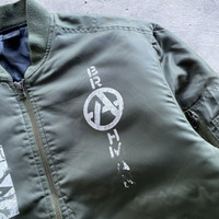 BRAHMAN Japanese Punk Band Bomber Jacket TAG : United Athle SIZE : Large MEASUREMENT , - Width (Armpit to armpit) : 22” - Length (Shoulder the end of garment) : 27.5” - Shoulder : 19” - Sleeve Length : 25” CONDITION : Good used, no holes and stains. Just print got faded ** PLEASE LEAVE ME YOUR PHONE NUMBER ON THE NOTE AFTER MADE A PURCHASE, ITS FOR COURIER NEEDED ** SKU 1708