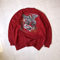 Japanese Brand - DOGTOWN Black Dragon Eagle and Dragon Motif Sweatshirt