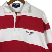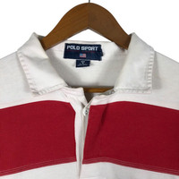 POLO SPORT Ralph Lauren Stripe Rugby Longsleeve Polo TAG : Polo Sport SIZE : XL MEASUREMENT , * Width (Armpit to armpit) : 26.5” * Length (Shoulder the end of garment) : 31” * Shoulder : 21.5” * Sleeve Length : 26” CONDITION : Perfect used, free from any holes and stains. Just missing one button on top. * *PLEASE LEAVE ME YOUR PHONE NUMBER ON THE NOTE AFTER MADE A PURCHASE, ITS FOR COURIER NEEDED ** SKU 1873