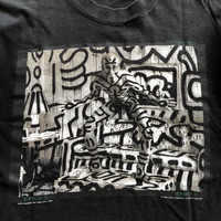 Rare KEITH HARING 1992 Photo by Annie Leibovitz Vintage T-Shirt TAG : Fruit of the loom SIZE : L MEASUREMENT , - Width (Armpit to armpit) : 21” - Length (Shoulder the end of garment) : 29” - Shoulder : 19,5” - Sleeve Length : 8” CONDITION : Good vintage used, single stitch all aorund. Black colour nicely faded ** PLEASE LEAVE ME YOUR PHONE NUMBER ON THE NOTE AFTER MADE A PURCHASE, ITS FOR COURIER NEEDED ** SKU 2347
