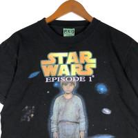 STAR WARS Anakin Skywalker Bootleg Vintage T-Shirt TAG : REO SIZE : M MEASUREMENT , * Width (Armpit to armpit) : 20” * Length (Shoulder the end of garment) : 25” * Shoulder : 17.5” * Sleeve Length : 7” CONDITION : Good vintage used, no holes and stains. Black colour nicely faded. * *PLEASE LEAVE ME YOUR PHONE NUMBER ON THE NOTE AFTER MADE A PURCHASE, ITS FOR COURIER NEEDED ** SKU 1765
