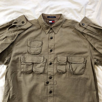 TOMMY HILFIGER Tactical Multipocket Button Shirt TAG : Tommy Hilfiger SIZE : X-Large MEASUREMENT , - Width (Armpit to armpit) : 25.5” - Length (Shoulder the end of garment) : 32” - Shoulder : 21.5” - Sleeve Length : 23.5” CONDITION : Perfect wear, no holes and stains ** PLEASE LEAVE ME YOUR PHONE NUMBER ON THE NOTE AFTER MADE A PURCHASE, ITS FOR COURIER NEEDED ** SHIPPING, all item will be shipped with tracking number. Item received within 14-21 working days.