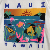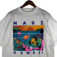 MAUI HAWAII Multicolor Printed T-Shirt TAG : Tultex SIZE : L MEASUREMENT , * Width (Armpit to armpit) : 21.5” * Length (Shoulder the end of garment) : 31” * Shoulder : 20.5” * Sleeve Length : 8.5” CONDITION : Good vintage used, no holes and stains. ** PLEASE LEAVE ME YOUR PHONE NUMBER ON THE NOTE AFTER MADE A PURCHASE, ITS FOR COURIER NEEDED ** SKU 1747