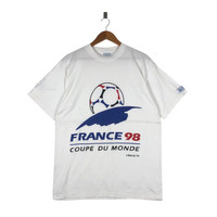 Vintage FIFA World Cup France 98 T-Shirt TAG : Fifa SIZE : L MEASUREMENT , - Width (Armpit to armpit) : 21” - Length (Shoulder the end of garment) : 30” - Shoulder : 20.5” - Sleeve Length : 8.5” CONDITION : Good vintage used, no holes and stains. ** PLEASE LEAVE ME YOUR PHONE NUMBER ON THE NOTE AFTER MADE A PURCHASE, ITS FOR COURIER NEEDED ** SKU 2070