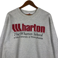 Vintage WHARTON School of the University of Pennsylvania Sweatshirt TAG : Fruit of the Loom SIZE : L MEASUREMENT , * Width (Armpit to armpit) : 22.5” * Length (Shoulder the end of garment) : 27” * Shoulder : 22” * Sleeve Length : 23.5” CONDITION : Perfect vintage used, free from any holes and stains. * *PLEASE LEAVE ME YOUR PHONE NUMBER ON THE NOTE AFTER MADE A PURCHASE, ITS FOR COURIER NEEDED ** SKU 1876