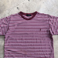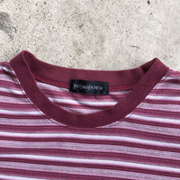 Yves Saint Laurent YSL Embroidery Logo Stripe T-Shirt TAG : Yves Saint Laurent SIZE : Small MEASUREMENT , - Width (Armpit to armpit) : 21” - Length (Shoulder the end of garment) : 25” - Shoulder : 19” CONDITION : Perfect used, no holes and stains SHIPPING, all item will be shipped with tracking number. Item received within 14-21 working days.