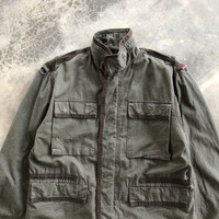 UNDERCOVER A/W 2000 The Imperial “Melting Pot” Military Style Jacket TAG : Undercover SIZE : Medium MEASUREMENT , - Width (Armpit to armpit) : 23.5” - Length (Shoulder the end of garment) : 29.5” - Shoulder : 19” - Sleeve Length : 24.5” CONDITION : Perfect used, from the Autumn / Winter collection tittle “melting pot”. Got large text logo on back. ‘Battle Dress Uniform’ (BDU) military inspired silhouette. Metal D-rings at shoulders with red Undercover logo 4 front snap button cargo pockets Adjustable velcro cuffs Ventilation zip at collar And slightly oversized, roomy fit Defect are faded colour on back only SHIPPING, all item will be shipped with tracking number. Item received within 14-21 working days.