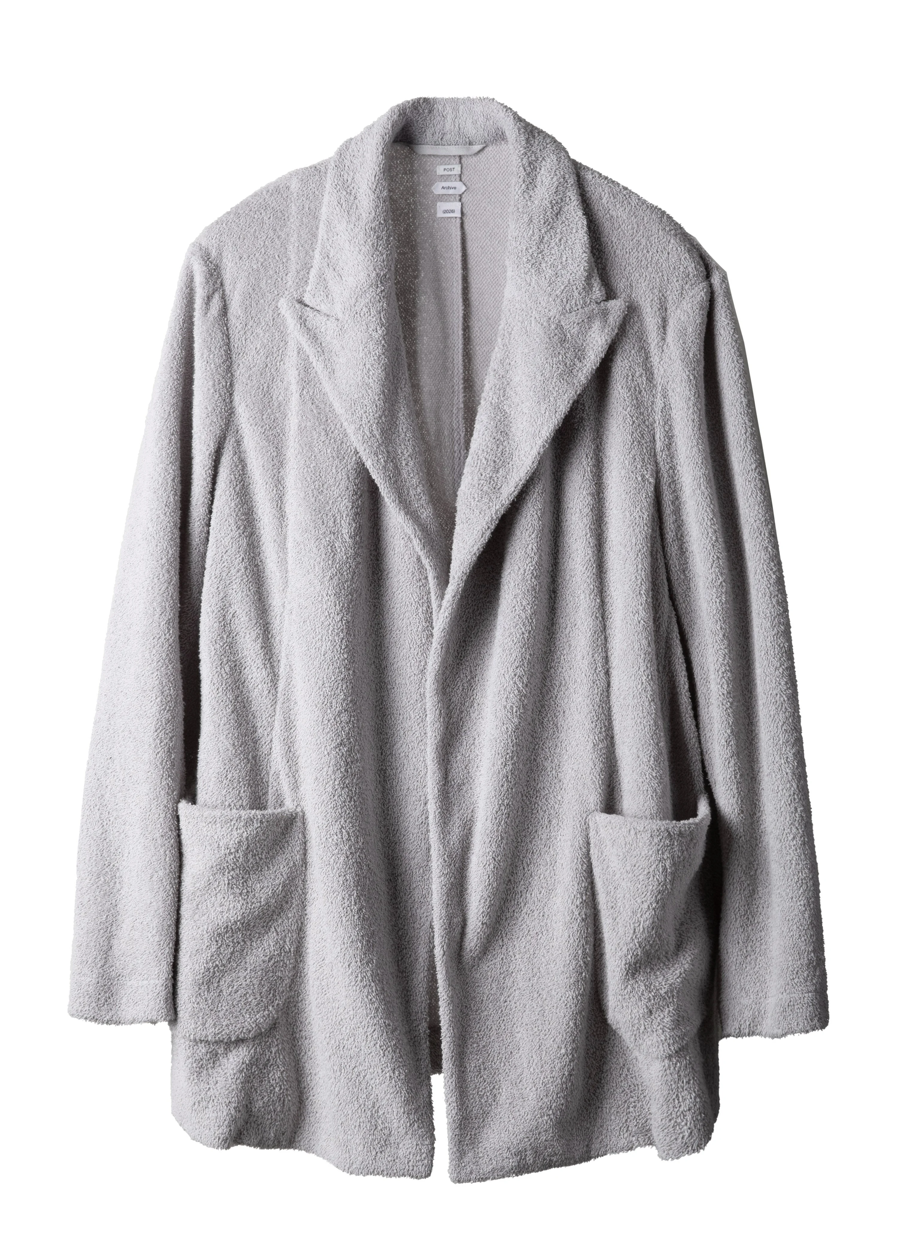 Peak lapel jacket Unstructured tailoring Cotton blend terry fabric Buttoned cuffs Dual front patch pockets Suit set with Drifter Double Trousers (2026) Relaxed fit Fabric from South Korea Composition Body: Cotton 78% Polyester 22% Pocket: Rayon 100% Made in South Korea Size Guide Size (Length/Chest/Sleeve/Shoulder) S: 74.7cm/55cm/61.3cm/43.2cm M: 77.6cm/58cm/63.3cm/45cm L: 80.4cm/61cm/65.3cm/46.8cm XL: 83.3cm/64cm/67.3cm/48.6cm Model height 184cm, wears size M
