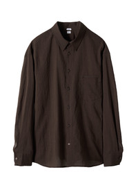 Straight point collar shirt Bio-washed cotton in black Natural creased texture Cut out utility patch pocket Button closure Standard fit Fabric from Japan Composition Body: Cotton 100% Made in South Korea Size Guide Size (Length/Chest/Sleeve/Shoulder) S: 70cm/54cm/57cm/49cm M: 73cm/57cm/59cm/51cm L: 76cm/60cm/61cm/53cm XL: 79cm/63cm/63cm/55cm