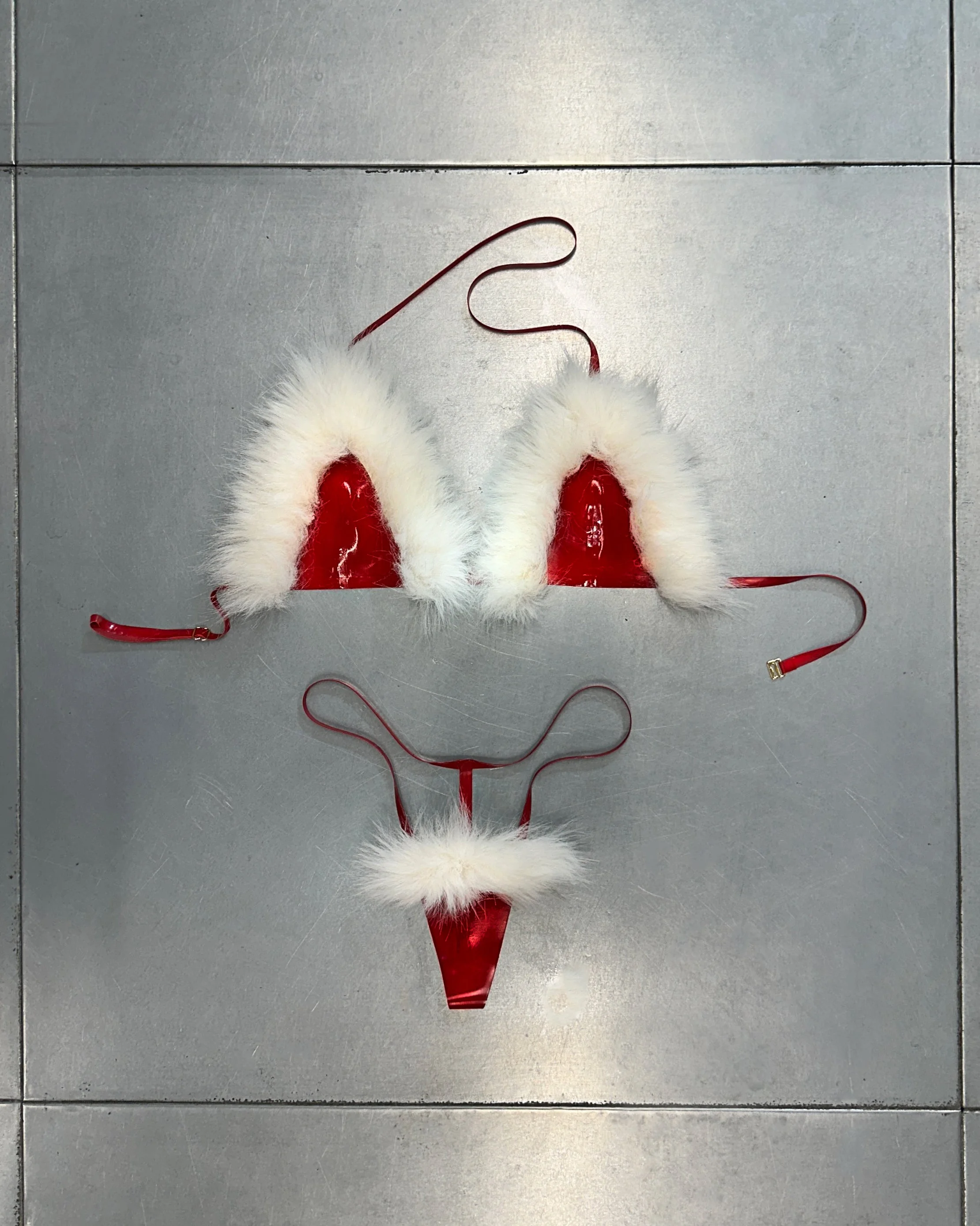 Our All I Want Bikini Top has been expertly handcrafted at our atelier in London. This faux fur latex piece has been designed with adjustable back strap, faux fur edge & delicate detailing. Style with our All I Want G-string for the full look. Don’t forget to use the latex wipe to give them that extra shine. - POSTER GIRL latex - Adjustable Shoulder Straps - Hook & eye fastening at the back - Faux Fur Trim - 100% latex