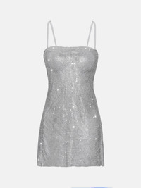 Make your statement crystal clear. Our crystal chainmail mini dress has removable bra cup padding and removable and adjustable straps to wear to your desired length. Designed with a side seam zip for easy closure. - Crystal chainmail mini dress - Removable bra cups paddening - Removable & adjustable straps - Side seam zip - Model wears size S - Model Height: 5'7"/ 174cm