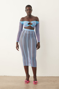 Introducing the Fortune Skirt in Crypto Blue from our coveted SS24 campaign, the epitome of luxury and sophistication. This midi skirt features a unique arrow and fishnet design that adds a touch of elegance to any outfit. Pair it with our exclusive Coolidge top to elevate your style with this must-have piece. - Designed in London, Made in Italy - Sculpting hosiery shapewear - Eagle feather motive - Crystal Heart Buttons - Model Height: 5'10 1/2"/ 179.5cm