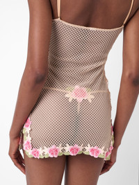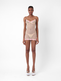 Introducing the Gardenia G-string as part of our new lingerie collection. Crafted from a mesh chiffon fabric, this romantic g-string features delicate embroidered flowers at the back. Pair with the Peoney Dress for the complete look. - Chiffon Mesh Fabric - Embroidered flowers & petals - Adjustable plush bra straps and back - Model wears size XS - Model Height: 5'9.5"/ 176cm