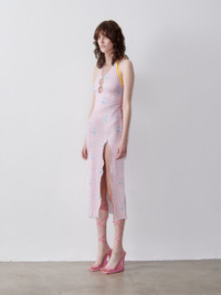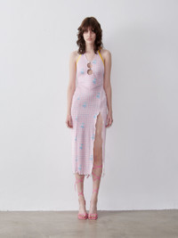 Description Dive into the exclusive POSTER GIRL POOLSIDE collection with the Heather Midi Dress. The midi dress is crafted in luxurious powermesh and debuts our iconic POOLSIDE gingham logo print. The Heather Dress features our signature cut out crystal heart detailing and long adjustable back tie. Finished with a high rise split and lettuce hem edging the Heather Dress is the perfect from poolside to the dance floor. Composition 95% Elastane 5% Polyamide Sustainability This POSTER GIRL piece is made hand crafted in the United Kingdom. Returns Please ensure that this garment is returned in it's original condition and include all their tags and original packaging.