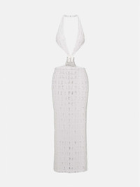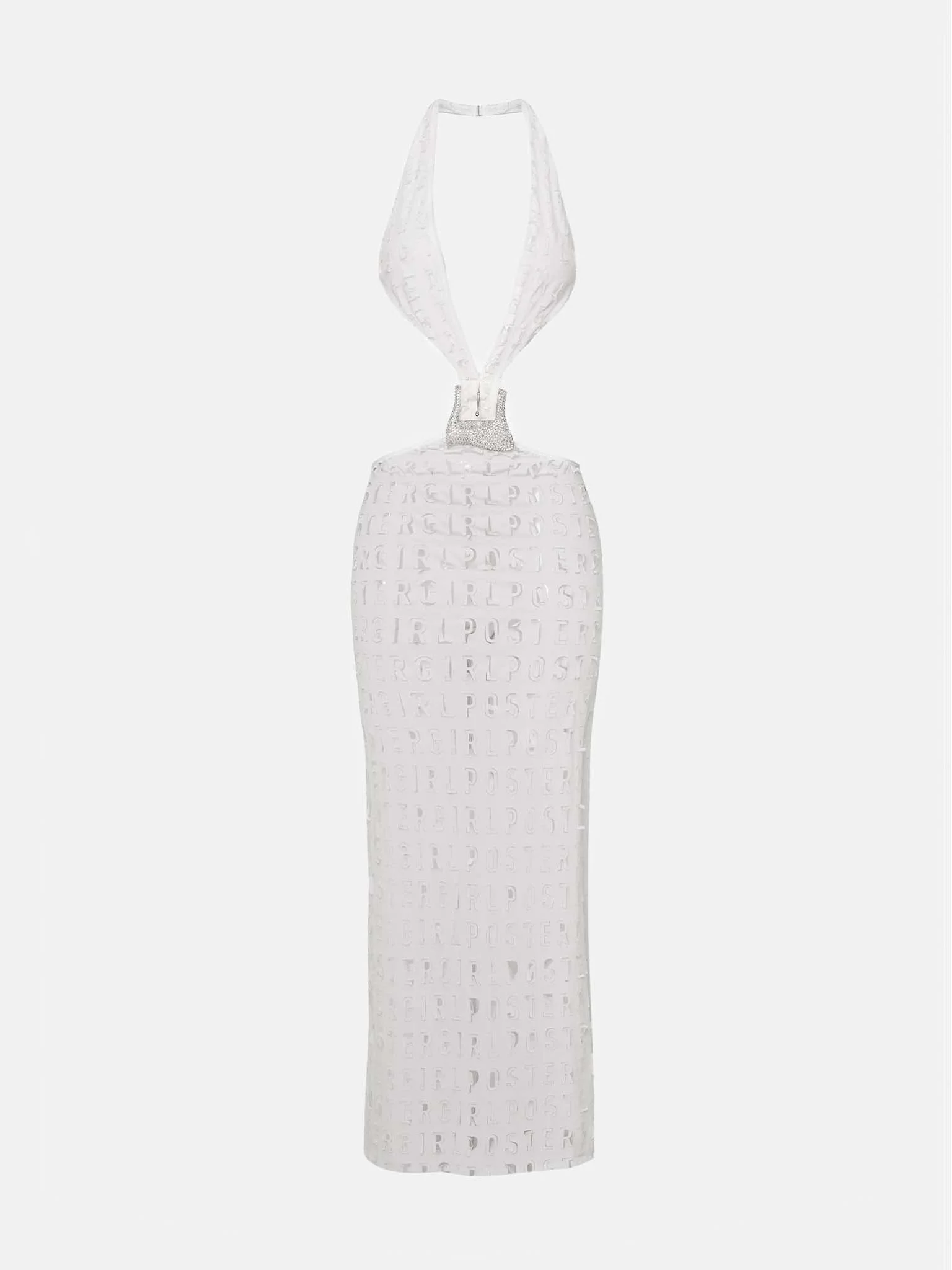 Embrace your inner goddess in our SS24 Isabella Dress. Cut from our latest custom POSTER GIRL laser cut collection, this lust-worthy backless dress features a halterneck bustier and is tied together at the waist with our iconic custom PG buckle, that has been updated with this seasons diamantes. Designed for a figure skimming fit, the Isabella dress oozes sultry glamour and is a seasonal wardrobe staple! As seen on Cindy Kimberly in the SS24 campaign. - POSTER GIRL custom logo laser cutting - Custom diamante encrusted buckle - Halterneck fastening - Model Height: 5'9" / 175 cm and wears size S