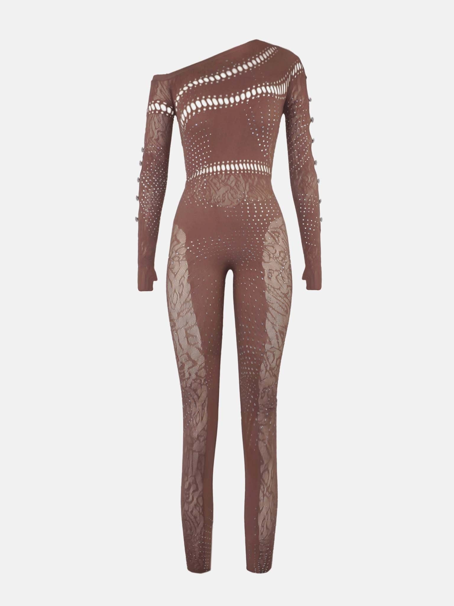 IVY LONG RHINESTONE JUMPSUIT OLD MONEY BROWN
