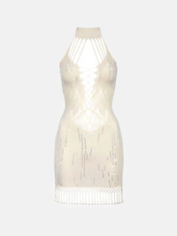 POSTER GIRL's shapewear category is designed to suction you in all the right places, releasing and supporting your natural curves where needed. The Poseidon Dress is a brand new design for AW23, featuring our brand new heart & bow intricate lacing, swarms of iridescent rhinestones, a halter neck and fringing detailing - finished with beaded pearls. As always, our shapewear features our infamous peep hole cut outs with heart iridescent buttons. Exclusively available in Candy Pink. Always remember, the brand logo is stamped into the lower back of all shapewear designs as POSTER GIRL's mark of authenticity. - Sculpting shapewear - Hotfix embellished details - Heart & bow lacing - Peep hole cut outs - Crystal heart embellishment - Halter neck detail - Fringed hem with pearls - 98% Nylon 2% Spandex - Model Height: 5'7"/ 170cm COMPOSITION & CARE - Composition: - 98% Nylon 2% Spandex - Care guide: - Machine wash on gentle cycle at 30 degrees - Do not iron - Do not tumble dry - Do not dry clean - Avoid rough surfaces - Take care when trying on - Heart embellishment repair kit included