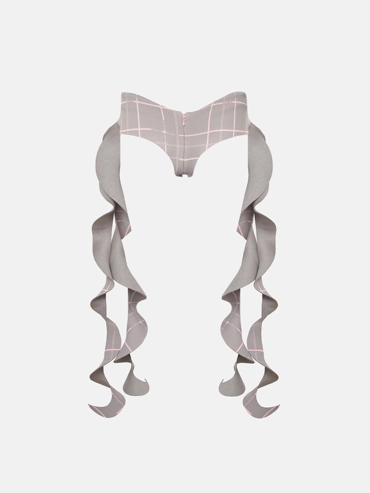 Stylishly strut into this season in our Rapunzel Hotpants. Cut from a custom POSTER GIRL logo check fabric, our low rise mini hot pants are accented with fabric frills that cascade down the side of your legs. Style yours with the matching Judy Jacket. - Center front zip - Low rise hot pants - Fabric frills at both sides - Model Height: 5'6" / 172cm and wears size S