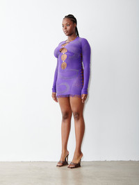 The infamous long sleeved Miranda Dress in Twilight features our iconic psychedelic swirl lace, heart cut out detailing and iridescent swarm or rhinestones. POSTER GIRL's brand logo is always stamped into the lower back of each garment, confirming its authenticity. - The dress is one size fits most (UK 6 - 18) - 98% Nylon 2% Spandex - Heart embellishment repair kit included RETURNS This item is FINAL SALE and is not eligible for a refund, exchange or credit note. This policy is stated clearly on our Returns & Exchanges page.