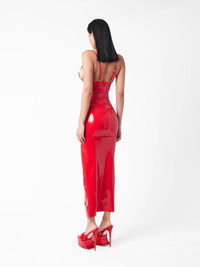 Look flamin' hot in the Roast Latex Flame Strap Midi Dress Black. With poster girl style lines to contour your figure and a flame detailed bra top, you'll have heads turning wherever you go. Designed with skinny adjustable straps and a center back concealed zip to cater for all body types. Don't forget to use the latex wipe to give it that extra shine. - Ultra shine midi dress - Center back concealed zip - Skinny adjustable straps - 100% latex - Model wears size XS - Model Height: 5'11"/ 180cm