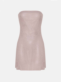 Embrace the romance in our Selena dress. Crafted from a matte mauve chainmail, this mini dress features a sweeping strapless neckline and lace up back closure which can be adjusted for the perfect fit. Handmade in London with each sheet of chainmail cut, linked and sewn together by hand to achieve the perfect slink. - Made from luxurious aluminium metal - Mini dress - Strapless bandeau dress - Lace up adjustable back - Fully lined with logo stretch mesh - Model is 177cm/ 5ft 9.5 Sustainability: Each chainmail piece is constructed by hand in London. Care: Chainmail is unlike most fabrics so it is important to take care when trying on. Chainmail ranges from XS-XL and does not stretch. Never force the garment on otherwise the chainmail will rip. If you are in-between sizes, we recommend sizing up.