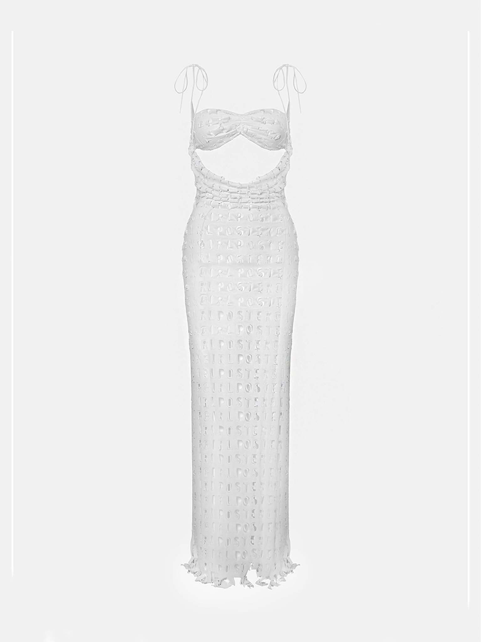 The Verity Dress debuts our new custom POSTER GIRL laser cut collection. Cut from a power mesh fabric and designed for a figure skimming fit, this dress features a cut out at the bodice and adjustable tie up straps. The Verity dress captures the high octane glamour emblematic of POSTER GIRL, making it the perfect choice for any destination or event dressing. - POSTER GIRL custom logo laser cutting - Adjustable bra back fastening - Tie-up spaghetti straps - Model Height: 5' 10½' / 179.5cm and wears size M