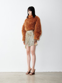 Description The Winona Wrap Skirt is crafted from our micro metal-mesh and wraps with ease around the waist into an asymmetric, mini-grazing hem. Designed to sit at your natural waist, custom fastenings & chain allows the wearer to adjust the fit accordingly. Partially lined in POSTER GIRL logo mesh. Composition Outer - 100% Aluminium Lining - 93% Polyamide 7% Elastane