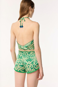 The Boxer Lulu is a vibrant and playful addition to your wardrobe. Inspired by artistic flair, the striking print adds a pop of color. Made from high-quality viscose satin, it ensures a comfortable and relaxed fit. With an elastic waistband, it's perfect for lounging and casual outings. Radiate confidence and style in Boxer Lulu. Shown here in Green Macro Ikat. Our Viscose is certified eco-responsible. Model wears a small size/US 4/EU 36/UK 8 and is 5'9/ 180cm tall.