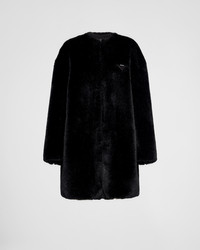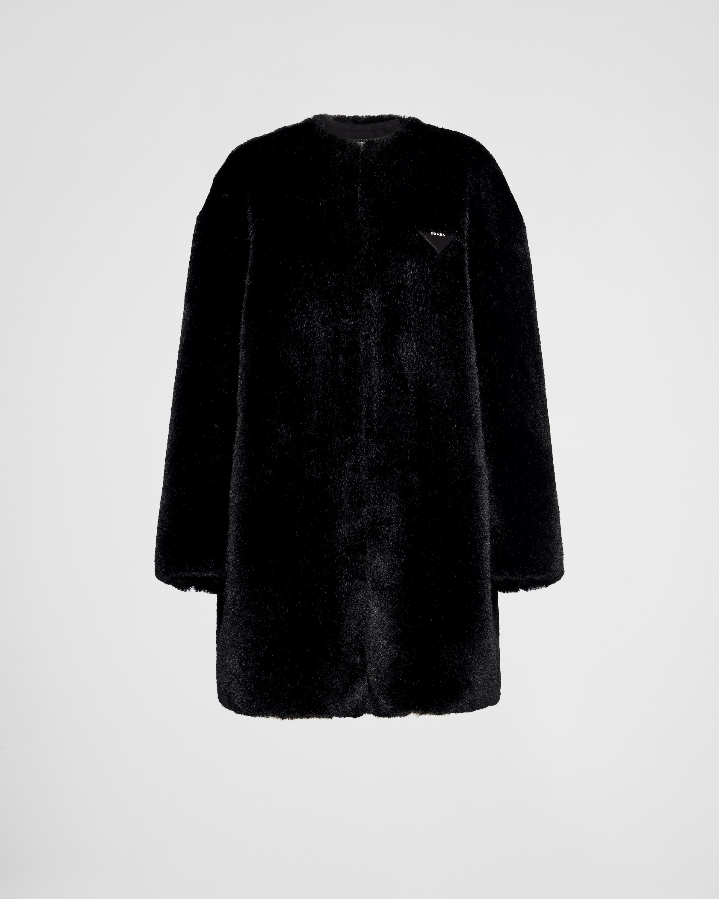 This soft, elegant deconstructed coat is made of aspen. The sheen of the material creates a delicate play of light, giving the garment a sophisticated yet modern tone. The triangle logo stands out in a contrasting material, adding a contemporary note to the design. - Product code: PZS012_12DH_F0002_S_231 - Lined - Regular fit - Front hook closure - Straight sleeve - Vertical pockets - Fabric triangle logo - Imported - The model is 180 cm tall and wears a size 38 Height: 88cm MATERIALS Main material: 100% polyester
