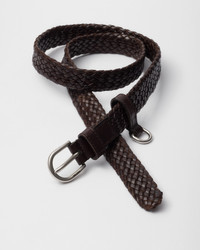 This braided leather belt has a design with refined details and informal style. A metal buckle, characterized by sleek, curved lines, completes the accessory. - Product code: 1CM282_2HIR_F0201 - Braided workmanship - Metal buckle - Lettering logo engraved on the buckle - Imported Height: 2cm MATERIALS Main material: Brass
