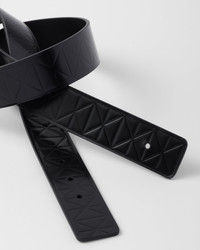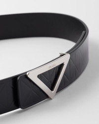Part of a line of modular accessories with a versatile spirit, this belt strap can be combined with a buckle of choice to create different combinations. The triangle, an iconic symbol of Prada collections, is transformed into a modern embossed pattern that decorates the item made of brushed leather. - Product code: 2CA008_ZO6_F0002 - Embossed triangle motif - Imported Height: 3.5cm MATERIALS Main material: Calfskin