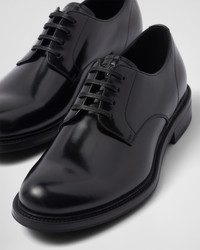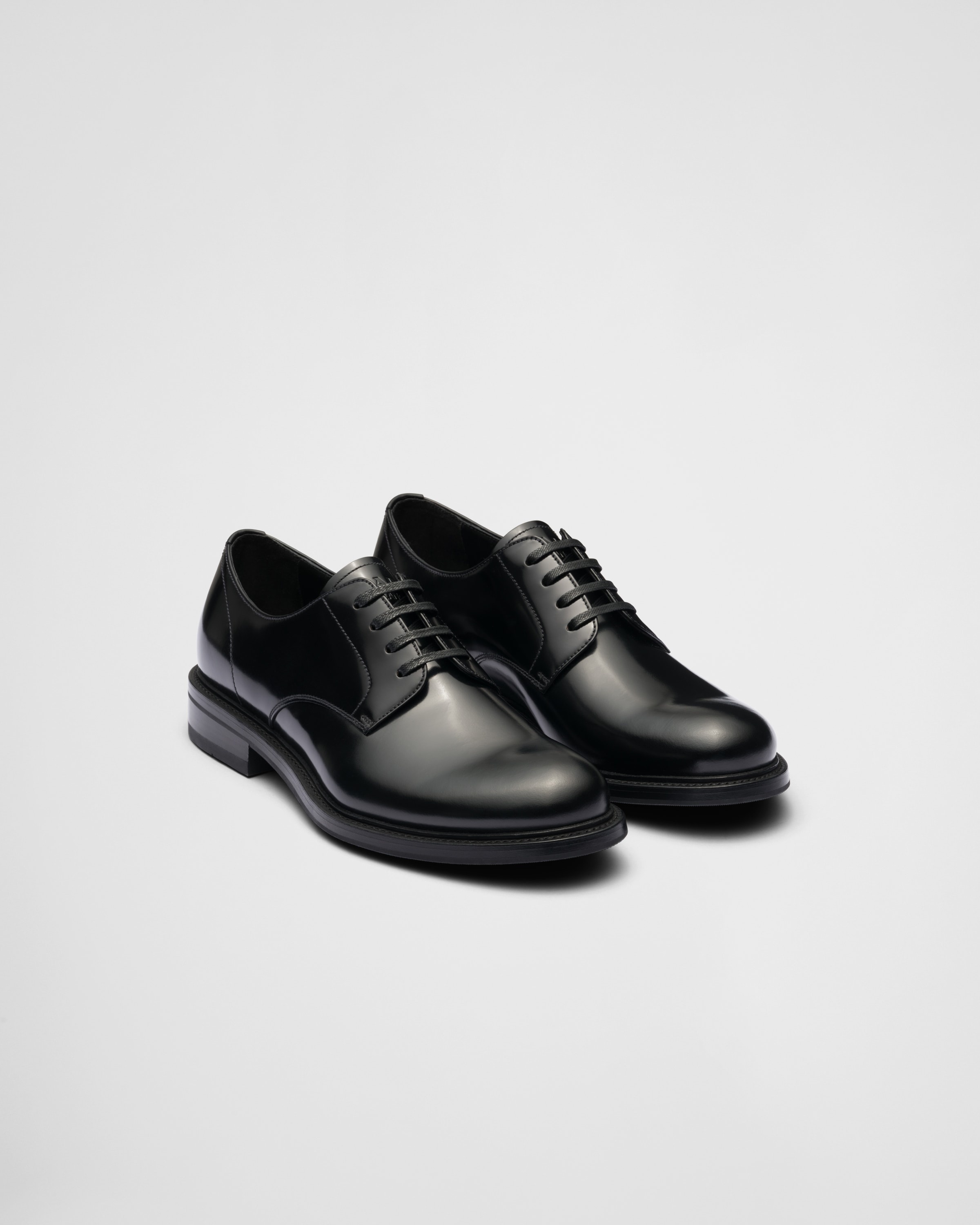 A clean, sleek aesthetic characterizes the contemporary style of these brushed leather lace-up shoes with a voluminous silhouette. The important construction and metal lettering logo underline the personality of the shoe. - Product code: 2EB198_055_F0002_F_X000 - Prada Milano logo embossed on the tongue - Leather sole with rubber half-sole - Sole height: 25 mm - Leather insole - Imported MATERIALS Main material: Calfskin