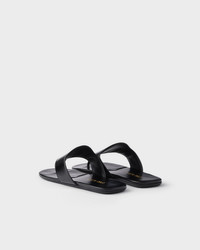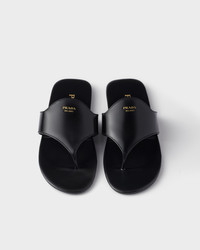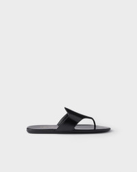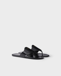 The clean, minimalist design of these thong sandals expresses a refined, contemporary style. The sleek lines of the design are emphasized by the elegant finish of brushed leather. - Product code: 1Y057O_055_F0002_F_005 - Enameled metal triangle logo - Monoblock rubber sole, 5 mm, with hot-stamped logo - Imported MATERIALS Main material: Calfskin