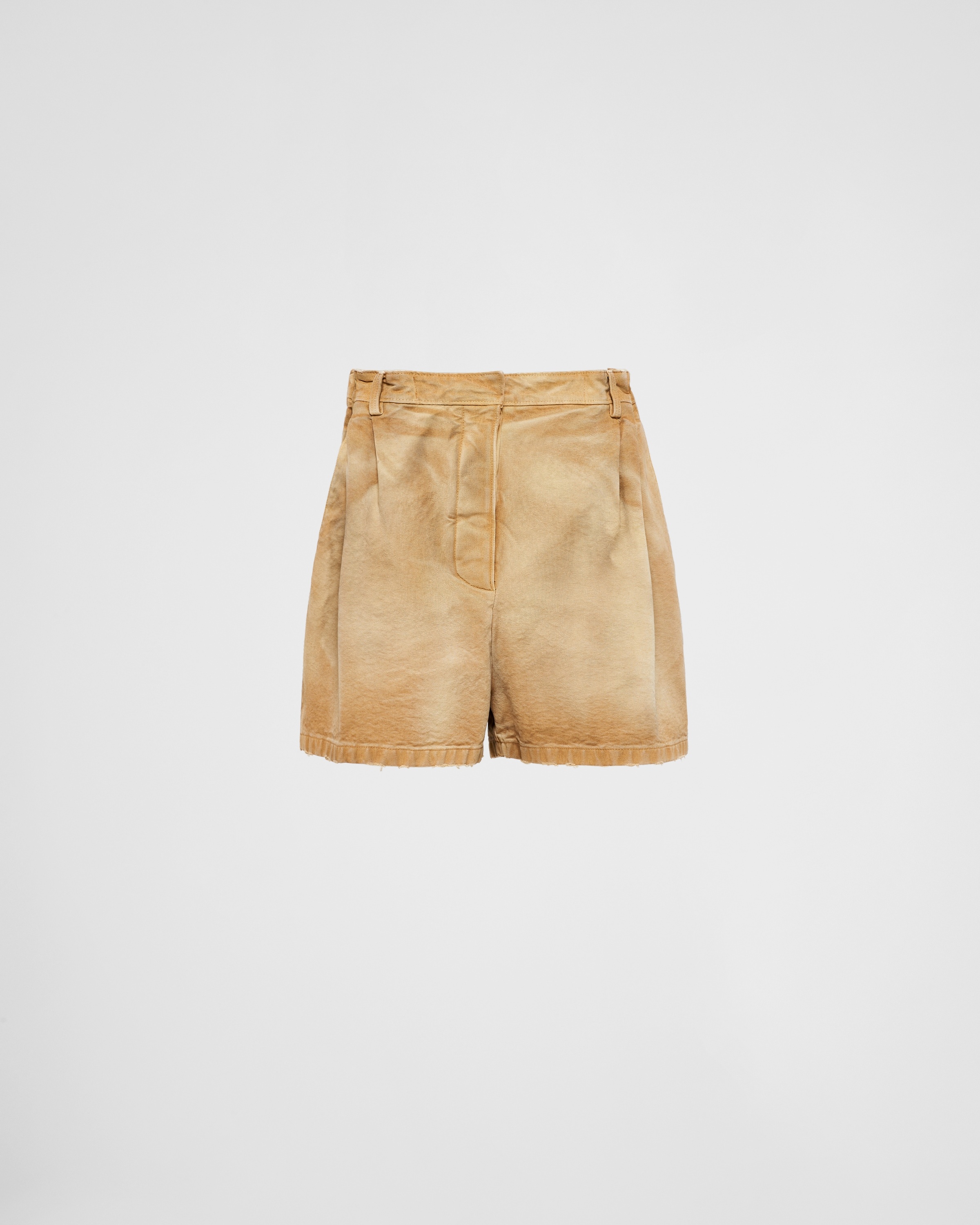 These canvas shorts feature a relaxed fit silhouette emphasized by the worn finish that gives the style a unique and contemporary touch. Sleek, classic details complete the menswear-style garment decorated with the triangle logo. - Product code: 22H919_145O_F0QB9_S_OOO - Unlined - Button fly - Waistband in the same fabric - Triangle logo - Garment-dyed treatment - Front welt pockets - Back welt pockets - Garment length: 43.5 cm, Size: 38 - Imported - The model is 180 cm tall and wears a size 38 Height: 43cm MATERIALS Main material: 30% cotton 70% recycled cotton