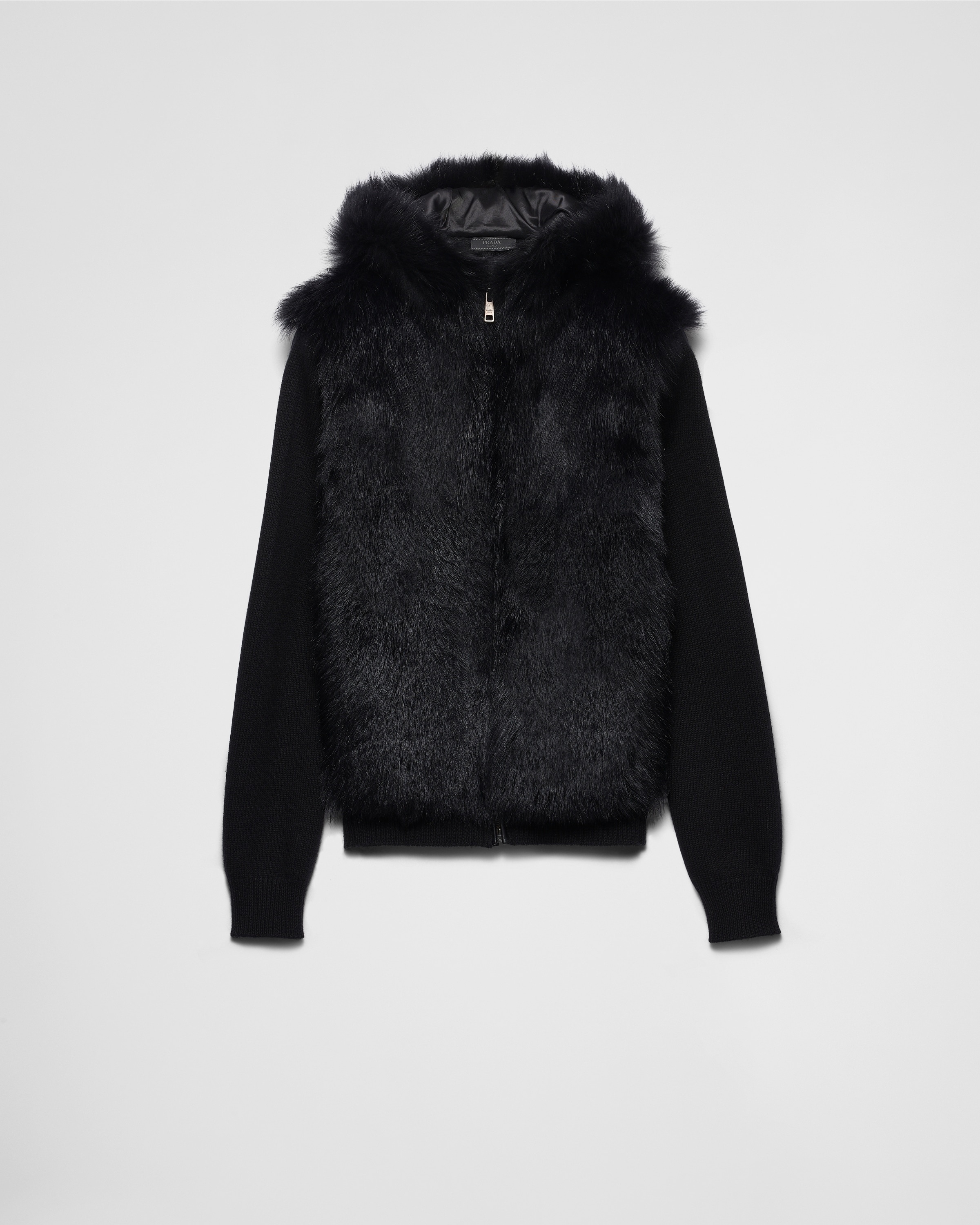 This cardigan blends the soft feel of fine cashmere and wool with innovative techniques and refined details, presenting a modern twist on traditional knitwear. - Product code: UMG375_16AN_F0002_S_OOO - Plain knit - Boxy fit - Hooded collar - Semi-raglan shoulder - Ribbed cuffs and hem - Front zipper fastening - Side pockets - Imported - The model is 189 cm tall and wears a size 48 Height: 68cm MATERIALS Main material: 30% cashmere 70% virgin wool