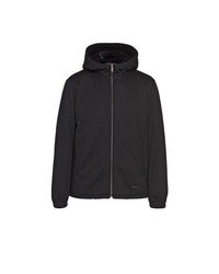 This men's blouson jacket comes in fine cashmere cloth made from very fine fibers bonded to a bio-based, waterproof and windproof technical membrane. For a second protective barrier, the cashmere undergoes a PCF Free waterproofing treatment that is free of toxic substances for the environment and primarily produced from renewable plant-based materials. Prada's duality is also expressed through the construction of its fabrics: traditional luxurious materials are combined with innovative, eco-sustainable, high-performance technical fibers. - Product code: SGB713_1YEQ_F0002_S_202 - Regular fit - Hooded collar - Straight sleeves - Zipper closure - Welt pockets - Elasticized cuffs - Regular shoulder - Elasticized hem - Hood drawstring with leather tip, elasticized drawstring on the hem - Lined and padded - Saffiano leather label - Imported Height: 70cm MATERIALS Cashmere