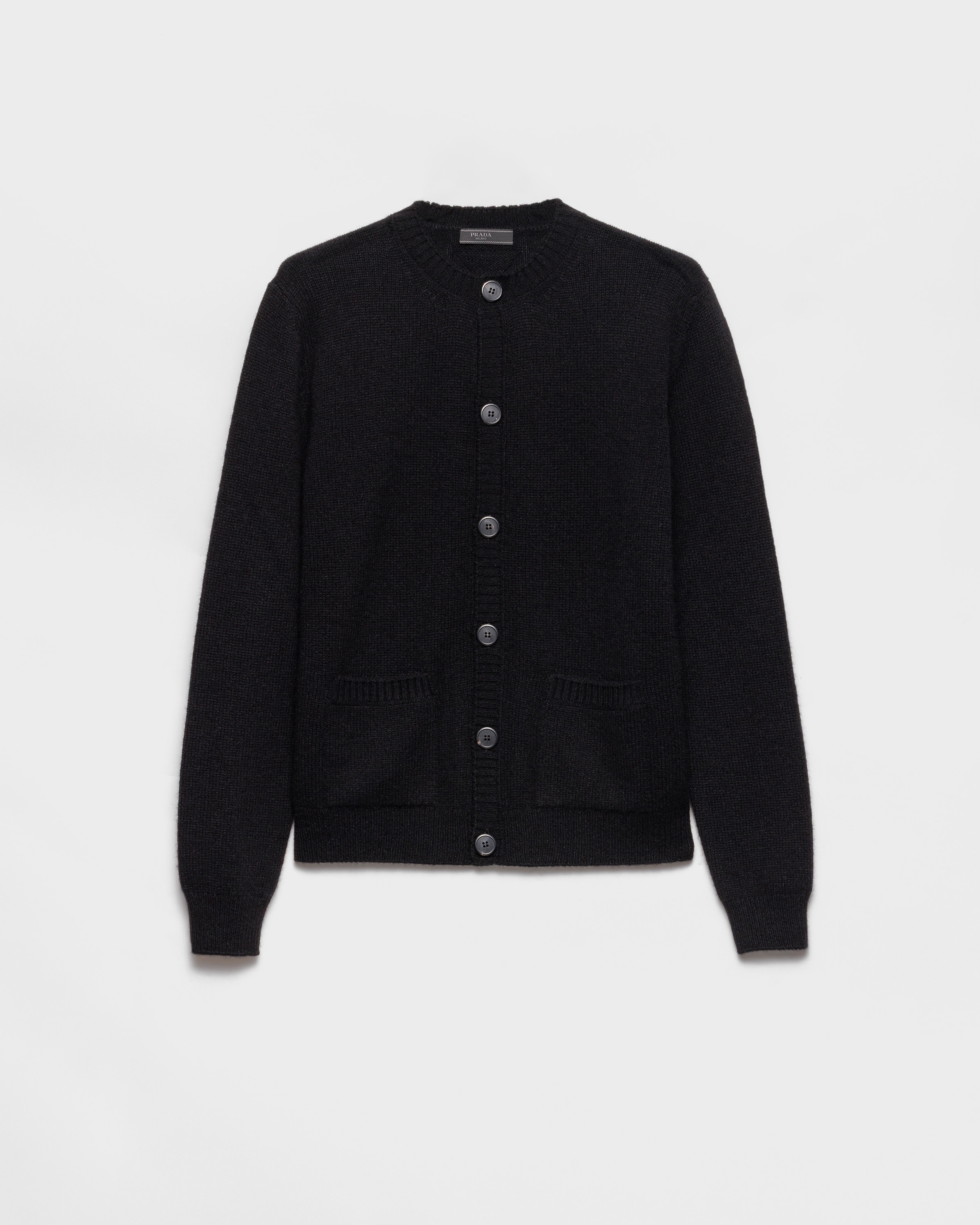 Sleek softness, a perfect shape. This slim-fit cashmere cardigan stands out for its plain knit, slim fit, and iconic details like the triangle logo and patch pockets. - Product code: UMG414_17TU_F0002_S_OOO - Plain knit - Slim-fit silhouette - Ribbed knit neck trim - Regular shoulder - Ribbed knit cuffs and hem - Triangle logo - Front button closure - Patch pockets - Imported - The model is 187 cm tall and wears a size 48 Height: 64cm MATERIALS Main material: 100% cashmere