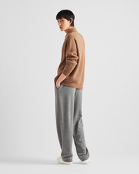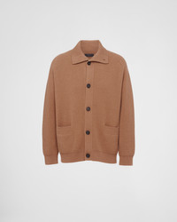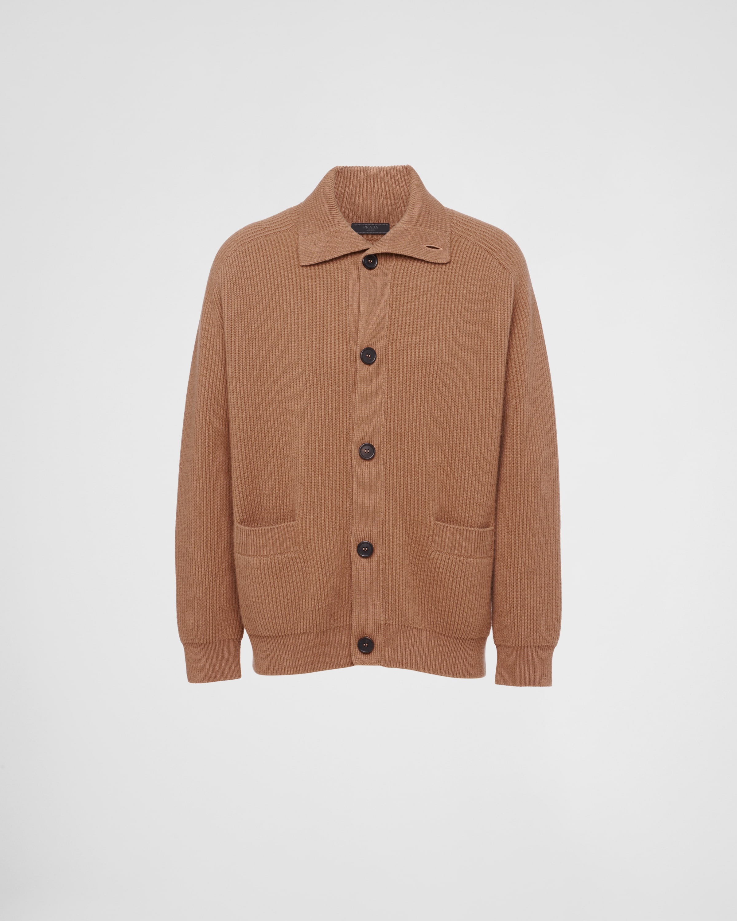 This ribbed knit cardigan made of fine, soft cashmere has a casual silhouette and sleek details. The oversized garment with a relaxed fit is decorated with the knit triangle logo applied on the back. - Product code: UMG318_14G5_F0040_S_OOO - Ribbed knit - Oversized fit - Ribbed knit collar - Saddle shoulder - Ribbed knit cuffs and hem - Knit triangle logo - Front button closure - Patch pockets - Imported - The model is 188 cm tall and wears a size 48 Height: 74cm MATERIALS Main material: 100% cashmere