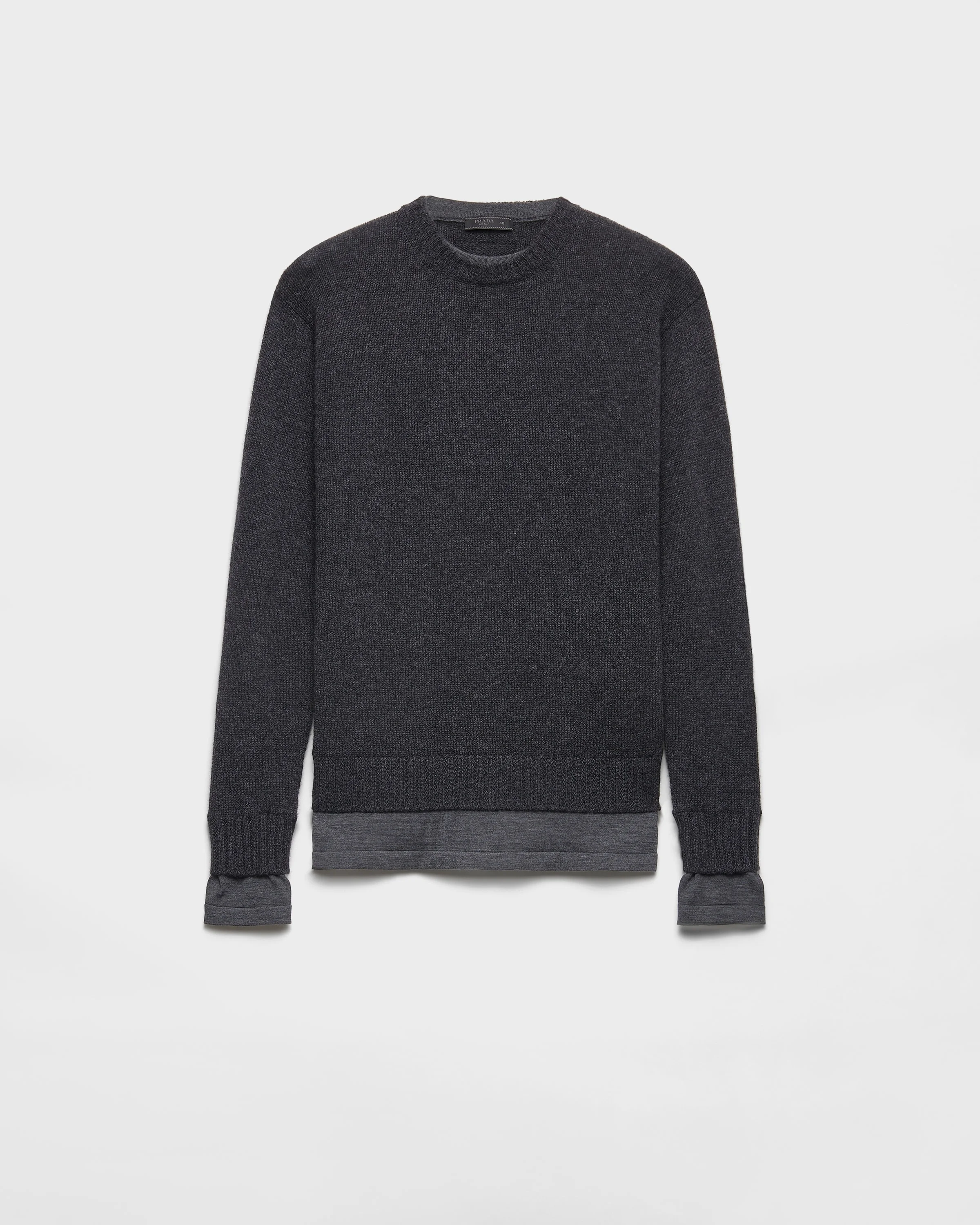 This sweater made of high quality cashmere has a classic silhouette with soft lines. The garment with ribbed knit trim combines comfort and contemporary sophistication. The sartorial logo label and tonal triangle logo decorate the style. - Product code: UMF190_18PR_F0308_S_OOO - Plain knit - Regular fit - Ribbed knit crew-neck - Semi-raglan shoulder - Ribbed knit cuffs and hem - Knit triangle logo - Sartorial logo label with the Prada logo on the front - Imported - The model is 188 cm tall and wears a size 48 Height: 66cm MATERIALS Main material: 100% cashmere
