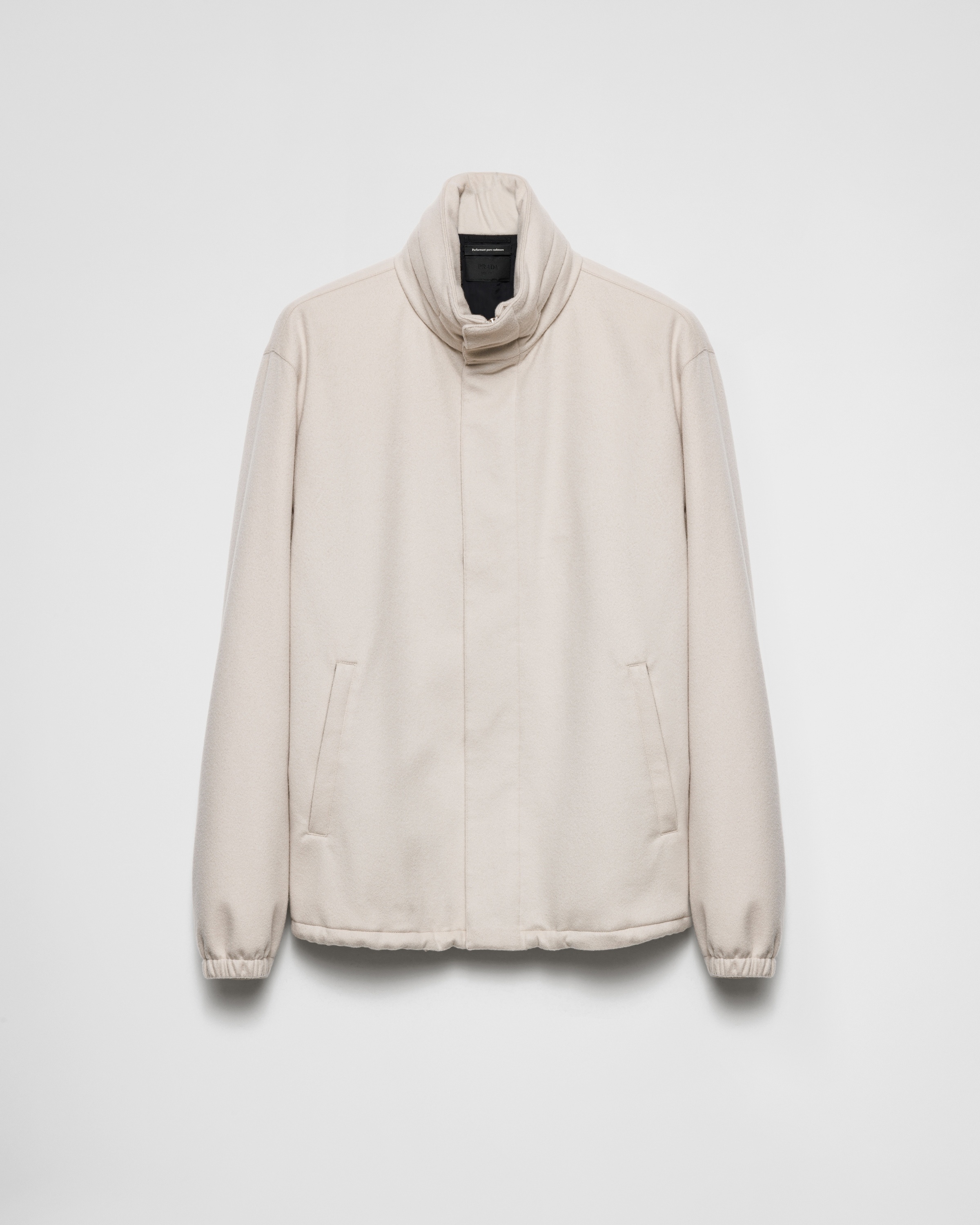 This fine cashmere jacket with a sophisticated, classic silhouette and pragmatic character is decorated with the sleek geometric shape of the iconic triangle logo. - Product code: SGC676_1YEQ_F0627_S_OOO - Regular fit - Stand-up collar - Straight sleeves - Zipper and snap closure - Welt zipper pockets - Elasticized cuff - Regular shoulder - Elasticized hem - Elastic drawstring - Lined - Fabric triangle logo on the back - Imported - The model is 189 cm tall and wears a size 48 Height: 72cm MATERIALS Main material: 100% cashmere