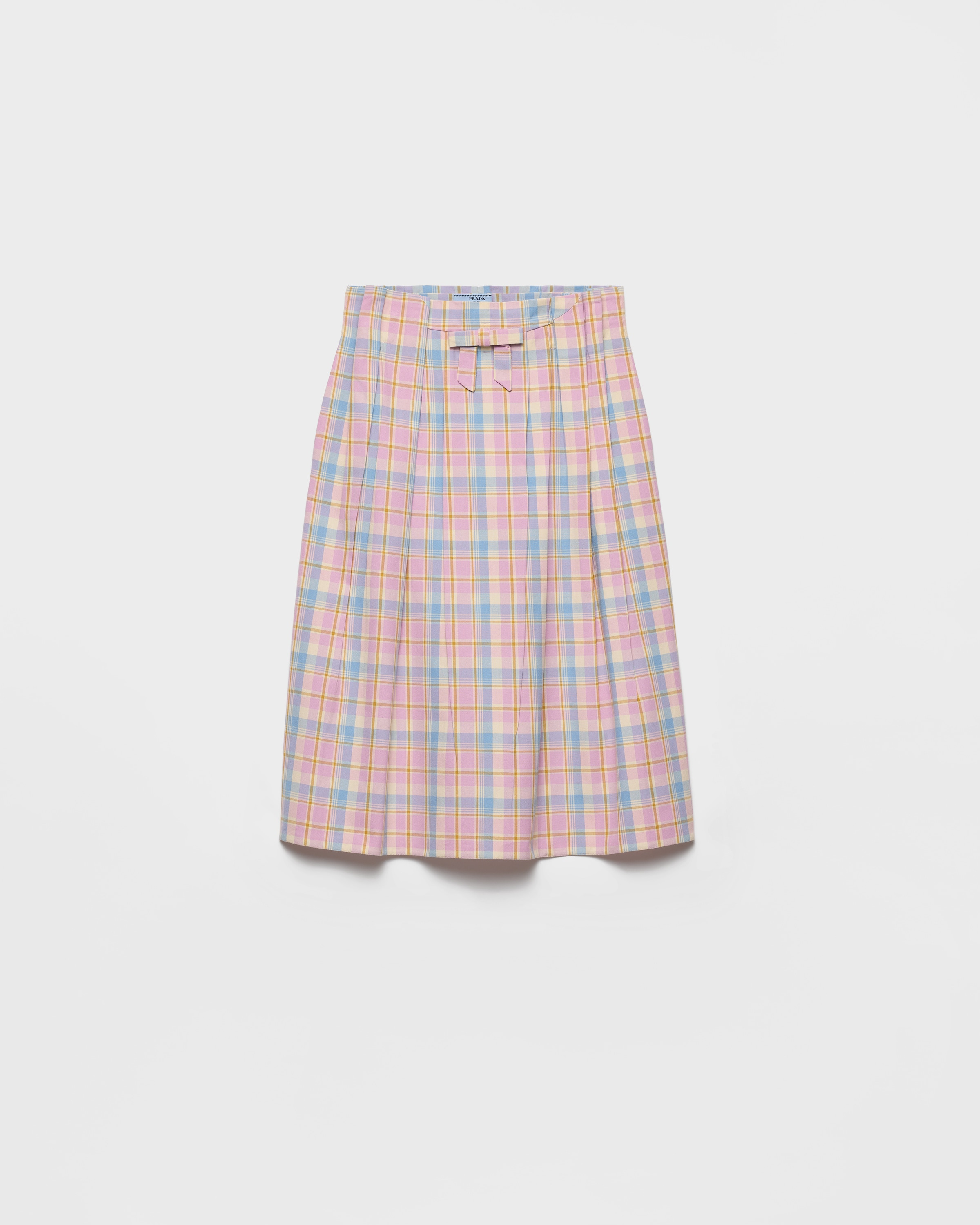 The codes of femininity are recontextualized and combined in designs with novel proportions. This skirt features a structured silhouette, draped at the waist and animated by a delicate check motif with vintage charm. - Product code: P134Z_171D_F0E18_S_OOO - Loose fit - Lined garment - Side closure with hook and zipper - Side pockets - Bow detail - Imported - The model is 178 cm tall and wears a size 38 Height: 67cm MATERIALS Main material: 100% cotton