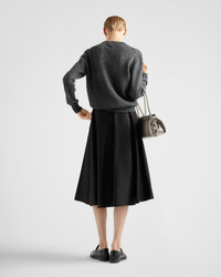 This chino circle midi-skirt embodies the sophisticated, modernist rigor typical of Prada. Its minimalist design is brought to life by the belt with the metal triangle logo in a contrasting color. - Product code: P132JE_10YP_F0002_S_OOO - Full silhouette - Unlined - Front closure with hook and zipper - Enameled metal triangle logo - Angled pockets - Leather belt with enameled metal triangle logo - Imported - The model is 179 cm tall and wears a size 38 Height: 75cm MATERIALS Main material: 100% cotton