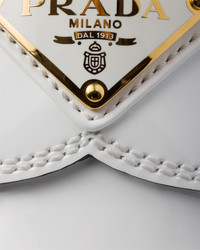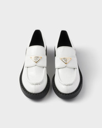 Chocolate loafers, a distinctive design of the Prada universe, embody a versatile, refined style. The hybrid silhouette is characterized by the juxtaposition of classic materials and details with the modernist volumes of the rubber soles. The elegant, glossy finish of patent leather enriches the style completed by the emblematic enameled metal triangle logo. - Product code: 1D246M_XUW_F097W_F_G050 - Upper with leather band - Enameled metal triangle logo - Monoblock rubber sole, 50 mm, with hot-stamped logo - Notched-effect rubber welt - Imported MATERIALS Main material: Calfskin