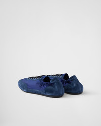 This incredibly lightweight sneaker with a structured design made of Re-Nylon and suede leather features a mix of materials that embodies Prada's sporty and artisanal soul. Its flat sole is enriched with elastic on the sides, making it easy to slip on. This product does not contribute to the SEA BEYOND educational program. - Product code: 2EG479_D7C_F0016_F_G001 - With laces - Screen-printed logo on the upper - Thin rubber sole - Removable leather-covered insole - These shoes have undergone an artisan treatment, giving the leather a deliberate vintage look. - Imported MATERIALS Main material: Recycled polyamide recycled polyester