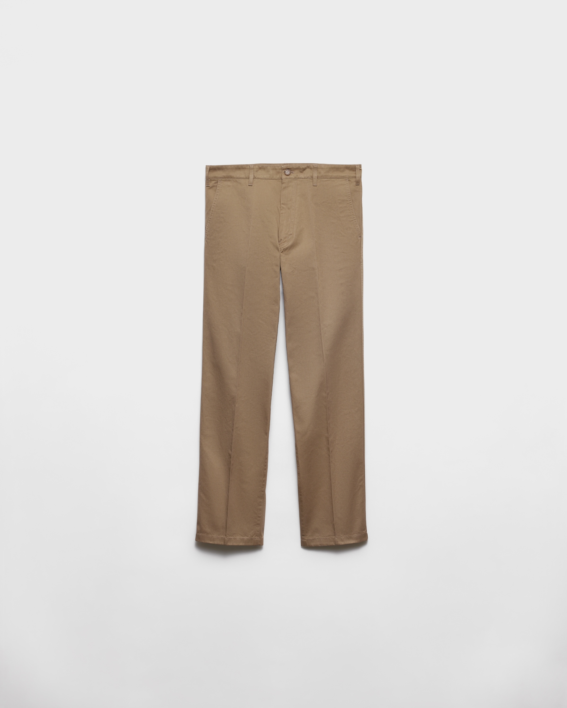 These chino pants made of light cotton with a deliberately aged look have a classic, wide-leg cut. The tonal fabric triangle logo adds its signature touch to the garment with casual style. - Product code: UP0368_17CB_F0572_S_OOO - Wide-leg fit - Zipper fly with button - Angled front slash pockets - Back welt pockets with button - Hem width 22 cm - Sartorial logo label and fabric triangle logo on the back - This garment has undergone an artisan treatment after assembly to give it a deliberately aged look - Imported - The model is 189 cm tall and wears a size 48 Height: 108cm MATERIALS Main material: 100% cotton
