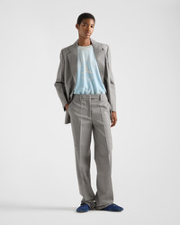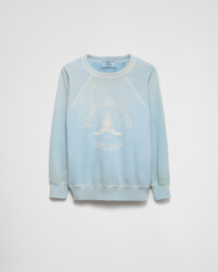Sporty style and retro details are combined in the design of this cotton fleece sweatshirt inspired by the college aesthetic. Made with artisanal techniques that create a used finish, the garment is completed with a charming vintage-look logo and the iconic knit triangle. - Product code: 134712_16V1_F0637_S_OOO - Boxy fit - Three-quarter sleeves - Ribbed knit crew neck - Ribbed knit hem - Ribbed knit cuffs - Garment-dyed - Prada logo printed on the front - Knit conceptual triangle on the back - Imported - The model is 178 cm tall and wears a size 38 Height: 56cm MATERIALS Main material: 100% cotton