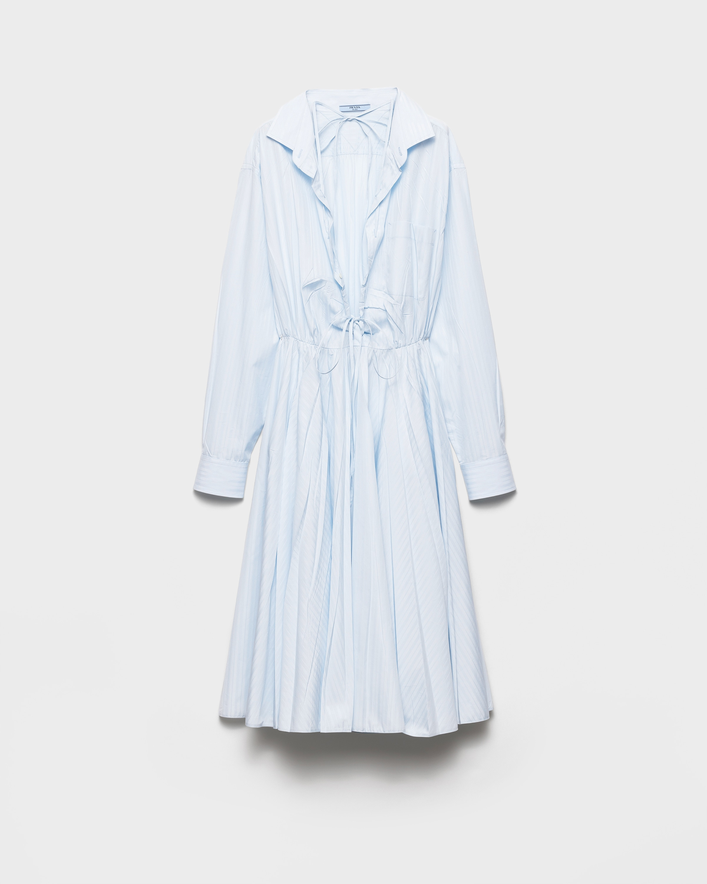 A design inspired by movement, this midi dress embodies a contemporary and sophisticated style. Crafted from cotton, the silhouette features a V-neckline that opens into a pleated skirt with soft, lightweight lines. - Product code: P3Q87_18OU_F0M10_S_OOO - Loose fit - Unlined garment - Deep V-neckline - Front tie closure - Shirt-style cuffed sleeves - Front patch pocket - Fabric logo - Flared hem - Imported Height: 115cm MATERIALS Main material: 100% cotton