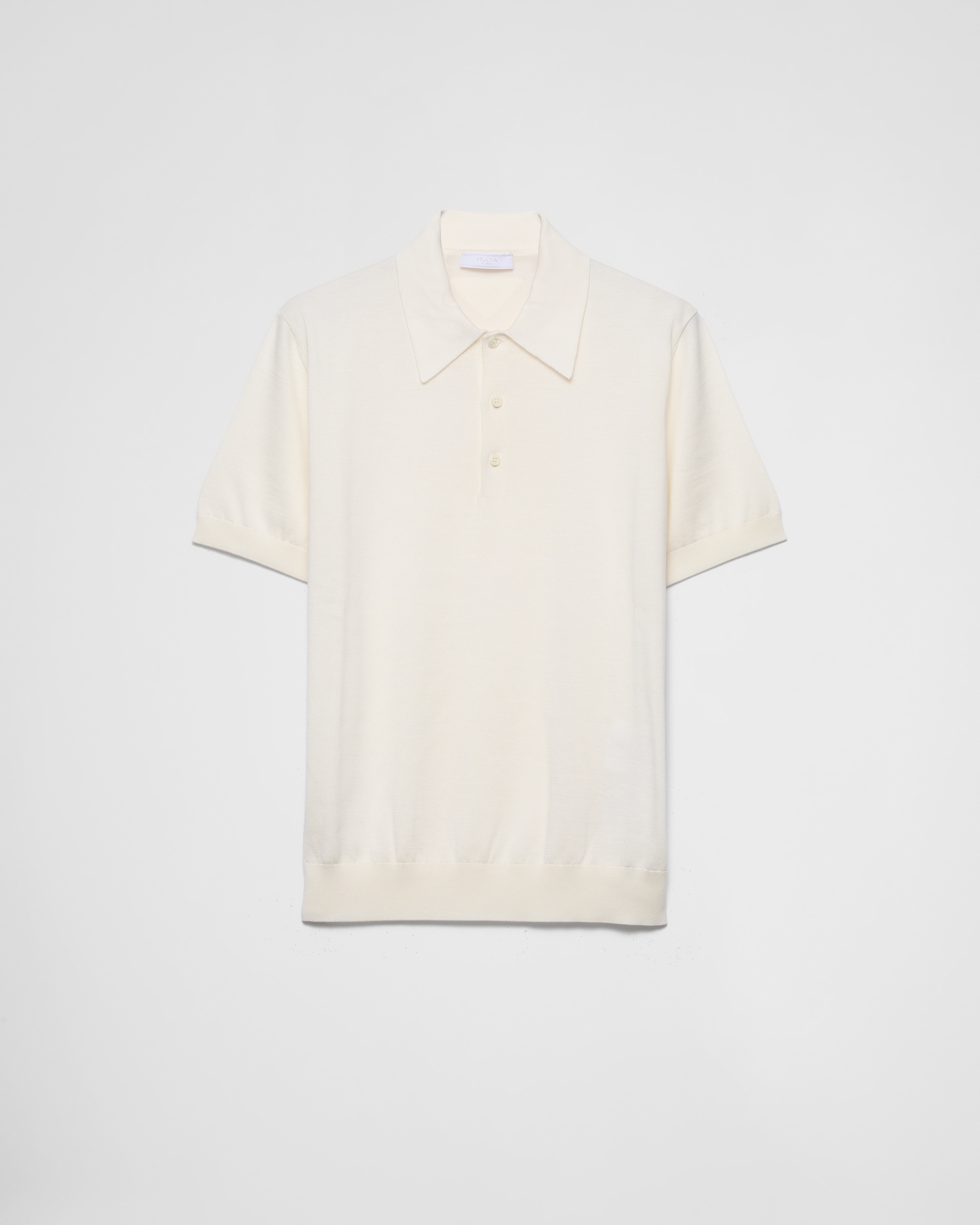 This cotton knit polo shirt has a sleek silhouette with a slim fit. The tonal triangle logo completes the contemporary style of the design. - Product code: UMB903_154B_F0L86_S_OOO - Plain knit - Slim fit - Polo collar - Semi-raglan shoulder - Ribbed knit sleeve trim and hem - Knit triangle logo - Front button closure - Imported - The model is 188 cm tall and wears a size 48 Height: 66cm MATERIALS Main material: 100% cotton